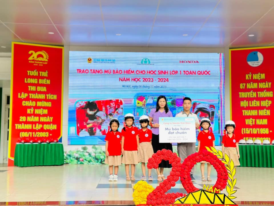 Cô !important;ng ty Honda Việt Nam tặng mũ bảo hiểm cho học sinh lớp 1 Năm học 2023 –2024.