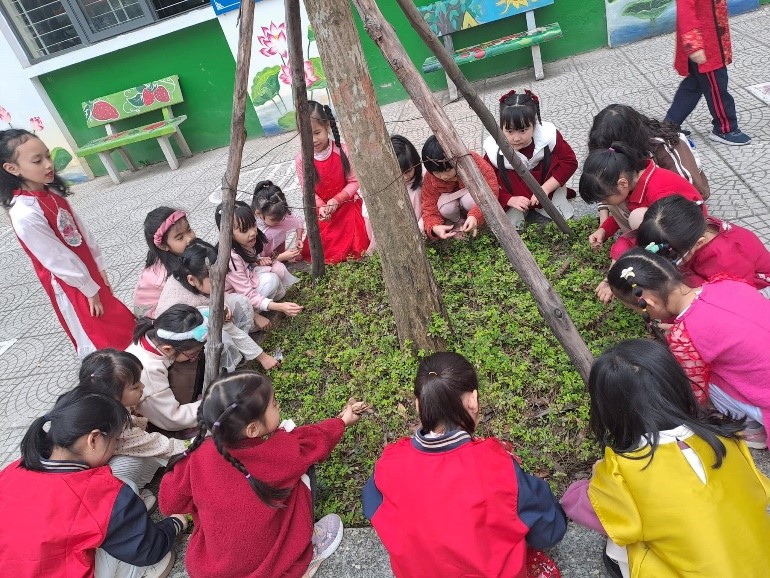 Cây nào cũng được các bạn nhỏ chăm sóc rất cẩn thận.