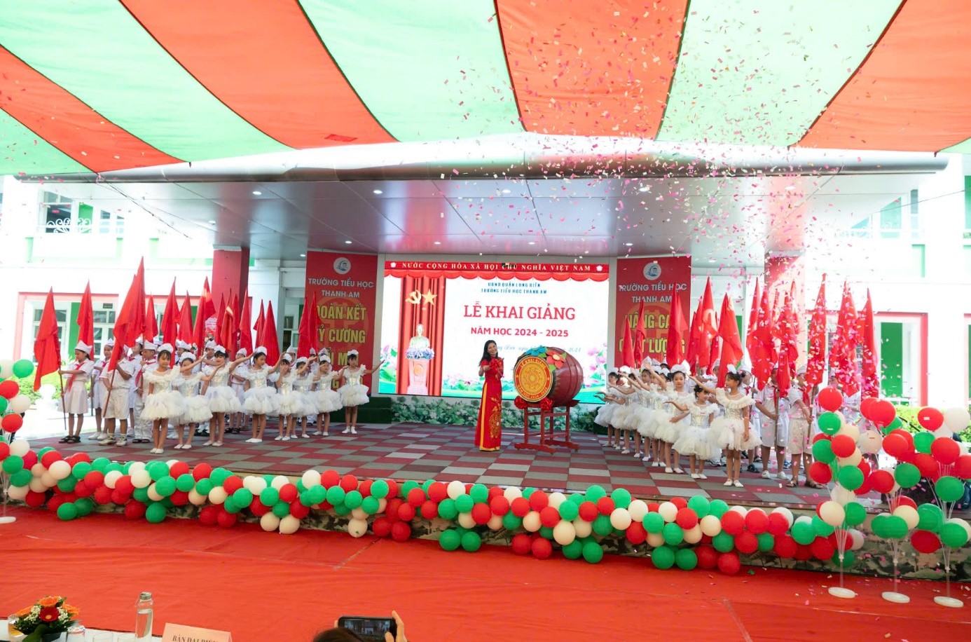 Sau phần lễ trang trọng, các tiết mục văn nghệ luôn là điểm nhấn không thể thiếu trong ngày khai giảng. Những bài hát, điệu múa, và các tiết mục do các em học sinh cùng giáo viên trường Tiểu học Thanh Am biểu diễn tạo ra không khí vui tươi và náo nhiệt.