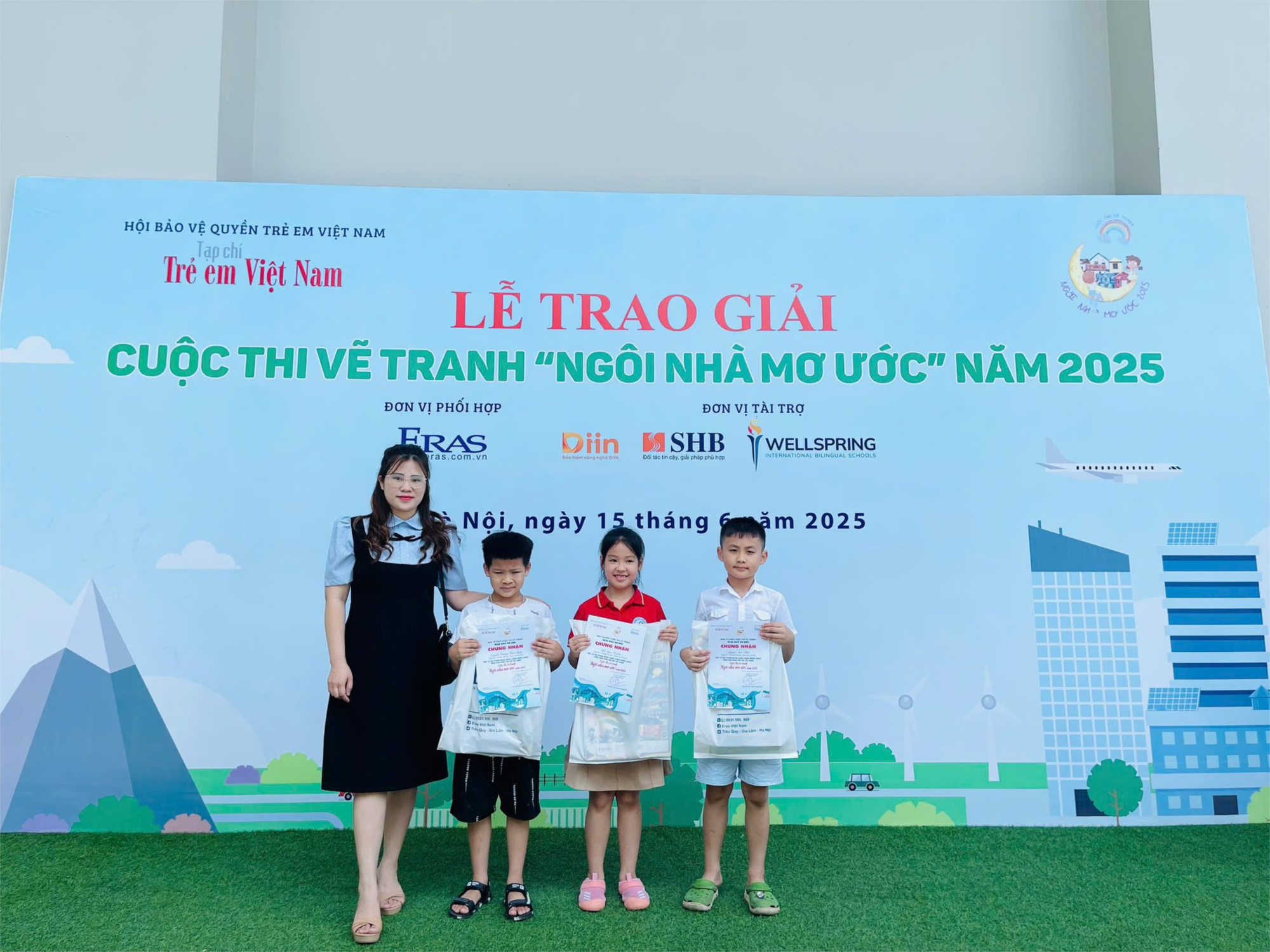 đã lọt vào top 10 bức tranh được bình chọn cao nhất và được trao giải tại trường Wellspring Hanoi – một thành tích vô cùng ấn tượng, thể hiện sự lan tỏa mạnh mẽ thông điệp về môi trường xanh, đô thị hạnh phúc qua góc nhìn trẻ thơ.