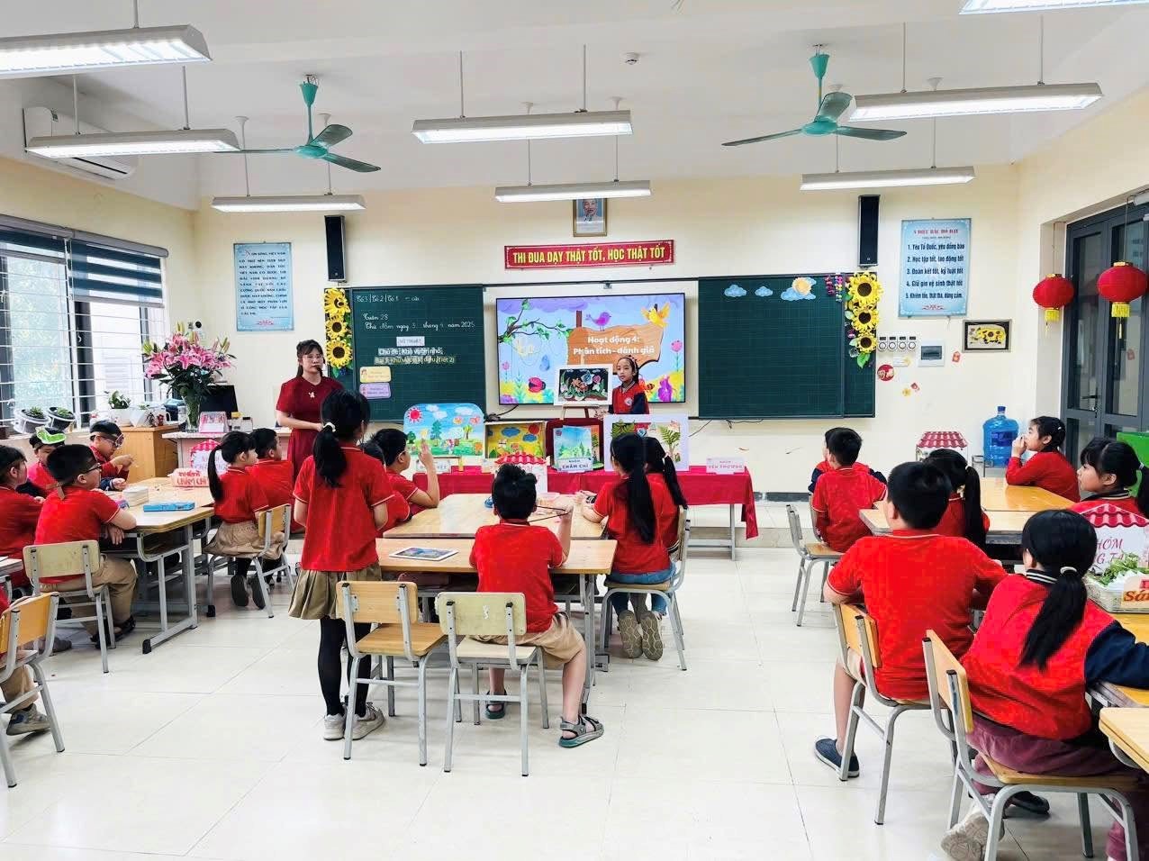 Là giáo viên có nhiều năm công tác, với nhiều kinh nghiệm trong giảng dạy, cô Phương Anh đã phát huy tốt những ưu điểm của phương pháp dạy học truyền thống và kết hợp phương pháp dạy học hiện đại như sử dụng công nghệ AI, các bài vè, cách gõ phách... Cách xử lý các hoạt động học tập hợp lí đã tạo không khí nhẹ nhàng cho tiết học. Cô giáo khéo lẽo dẫn dắt, gợi mở để học sinh chủ động tiếp cận với kiến thức. Học sinh được trao đổi, tương tác tốt với giáo viên và các bạn xuyên suốt quá trình tiết học. Học sinh hào hứng, chủ động tiếp thu bài học hiệu quả và luyện tập sáng tạo được nhiều sản phẩm đẹp. Sau khi hoàn thành sản phẩm, các em rất mạnh dạn tự tin chia sẻ về sản phẩm của mình, của bạn đồng thời các em biết quan sát và nêu được cảm nhận về nội dung, hình ảnh, màu sắc của bức tranh.