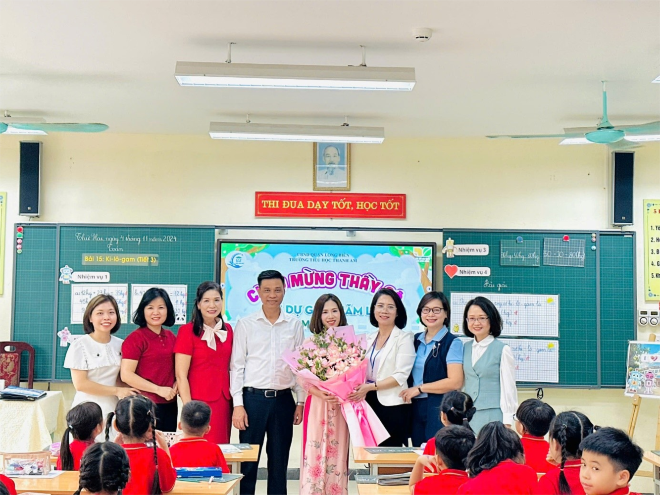 Sáng ngày 4/11/2024, cô Vân Anh đã mở màn hội thi với tiết dạy “Ki – lô - gam” (Tiết 3) của môn Toán lớp 2 tại trường Tiểu học Thanh Am. Đây là dịp để cô giáo thể hiện khả năng sư phạm của mình, đồng thời chia sẻ những phương pháp giảng dạy mới mẻ, sáng tạo để khơi dậy niềm yêu thích môn Toán ở học sinh.
