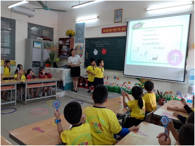 Phong trào vừa phát động đã nhanh chóng được tập thể giáo viên hưởng ứng nhiệt tình. Các tiết dạy đều chuẩn bị chu đáo, kĩ lưỡng, sử dụng phương pháp mới một cách linh hoạt, sáng tạo, thể hiện sự đổi mới phươngpháp giảng dạy một cách rõ rệt. Học sinh trong giờ học tích cực tham giaxây dựng bài, chủ động tiếp thu kiến thức. Trong những tiết hộigiảng các cô giáo đã vận dụng phương pháp giảng dạy mới, truyềnthụ kiến thức một cách nhẹ nhàng mà hiệu quả. Đây là một cơ hội tốt để giáo viên của trường được trau dồi chuyên môn, học hỏikinh nghiệm, lĩnh hội những phương pháp dạy học mới, học sinh đượctích cực, chủ động và sáng tạo. Mỗi tiết dạy, các côgiáo đều thiết kế với các hình thức và phương pháp dạy học thật phong phúnhằm lôi cuốn học sinh học tập, phát huy được tính tích cực, chủ động,sáng tạo của học sinh, giúp học sinh hứng thú và say mê khi tham giacác tiết học. Qua đó rèn cho các em kĩ năng vận dụng kiếnthức vào cuộc sống, năng lực tự học và hợp tác nhóm.