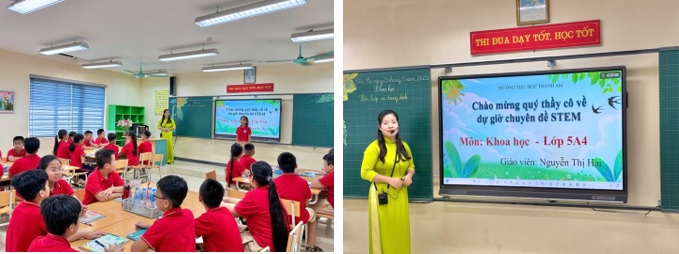 Sau tiết học STEM, cô giáo Hoàng Thị Quỳnh Nga - Phó Hiệu trưởng nhà trường có đôi lời chia sẻ cùng cô giáo Nguyễn Thị Hải và các con học sinh lớp 5A4: Tiết dạy không chỉ đem đến cho các em học sinh lớp 5A4 một hành trình khám phá khoa học đầy màu sắc, vừa học, vừa làm, vừa trải nghiệm mà còn giúp giáo dục các con về an toàn vệ sinh thực phẩm, về sự sẻ chia và cả những ứng dựng của tiết học trong cuộc sống.