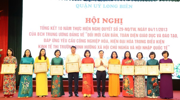 Ngà !important;y 3/7/2023, Quận ủy Long Biên tổ chức Hội nghị tổng kết 10 năm thực hiện Nghị quyết số 29-NQ/TW, ngày 4/11/2013, của Ban Chấp hành Trung ương Đảng (Khóa XI) về “Đổi mới căn bản, toàn diện giáo dục và đào tạo, đáp ứng yêu cầu công nghiệp hóa, hiện đại hóa trong điều kiện kinh tế thị trường định hướng xã hội chủ nghĩa và hội nhập quốc tế”.