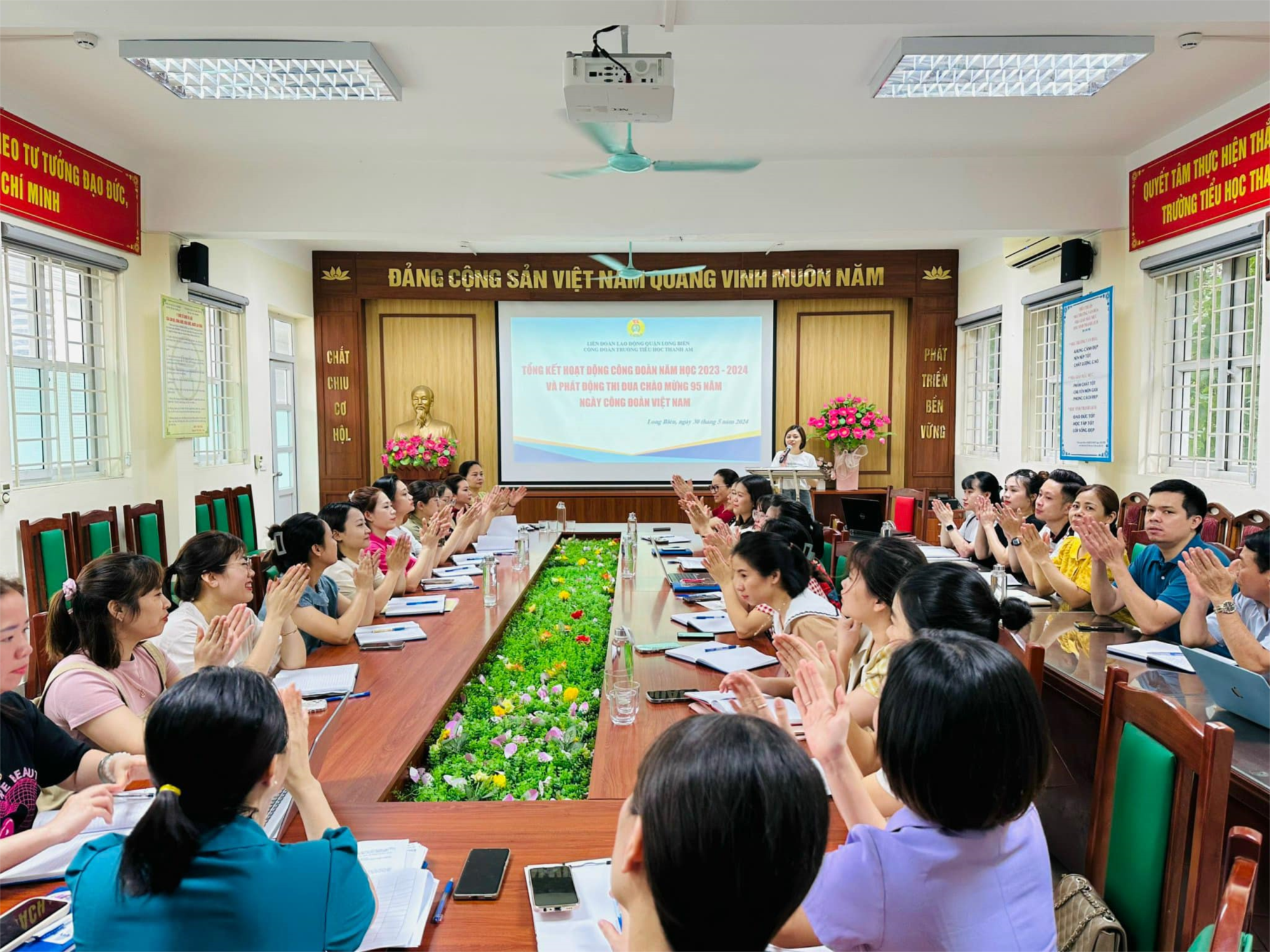 Bên cạnh đó, Công đoàn trường Tiểu học Thanh Am đã tổ chức phát động thi đua chào mừng 95 năm thành lập Công đoàn Việt Nam với 9 nội dung thi đua.