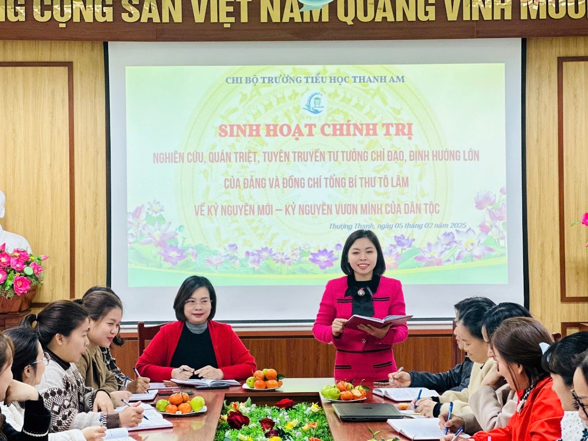 Với chuyên đề sinh hoạt “Hà Nội trong Kỷ nguyên mới – Kỷ nguyên vươn mình của dân tộc” chi bộ trường Tiểu học Thanh Am đã thực hiện sinh hoạt theo nội dung: Cơ sở định vị muc tiêu để Thủ đô vươn mình trong Kỷ nguyên mới; Nhận diện rõ những khó khăn và thách thức của Thủ đô trong giai đoạn tới; Những vấn đề đặt ra trong thời gian tới để Hà Nội phát huy vai trò đi đầu, dẫn dắt của Thủ đô trong tiến trình phấn đấu đưa nước ta trở thành nước phát triển, có thu nhập cao, những mục tiêu Hà Nội dự kiến đặt ra trong nhiệm kỳ Đại hội XVIII cũng được nhận định sẽ mang đến những cơ hội mới, động lực mới, để Hà Nội hoàn thành mục tiêu đến năm 2030 là Thành phố “Văn hiến - Văn minh - Hiện đại”; trở thành trung tâm, động lực thúc đẩy phát triển vùng đồng bằng sông Hồng, vùng kinh tế trọng điểm Bắc Bộ và cả nước; hội nhập quốc tế sâu rộng, có sức cạnh tranh cao trong khu vực và trên thế giới, phấn đấu phát triển ngang tầm thủ đô các nước phát triển trong khu vực.