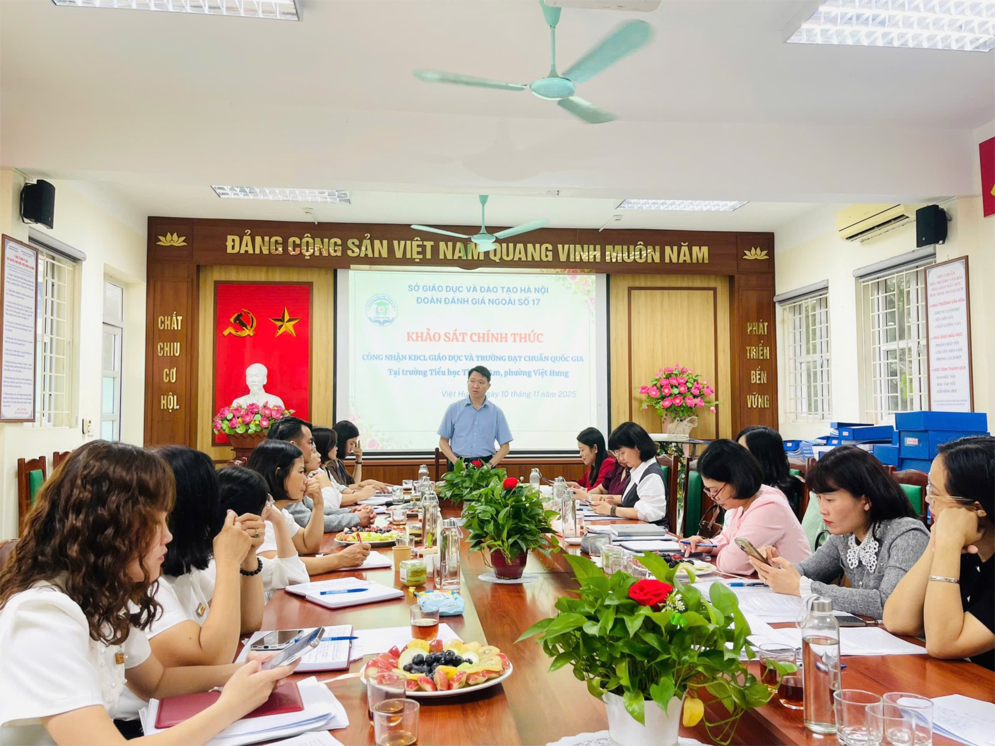 Tại buổi làm việc, đoàn đánh giá ngoài của Sở GD&ĐT Hà Nội đã tiến hành nghiên cứu hồ sơ minh chứng, khảo sát thực tế cơ sở vật chất, quan sát hoạt động dạy học, phỏng vấn cán bộ, giáo viên, nhân viên và Đại diện CMHS, nhằm thu thập thông tin khách quan phục vụ công tác đánh giá chất lượng giáo dục của nhà trường.