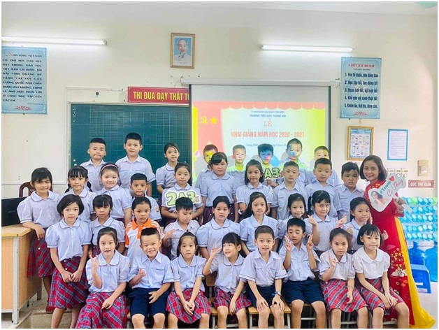 Cô Phương Thuỷ cùng các trò lớp 2A3 trong tiết thi GVG cấp Quận năm học 2020 - 2021