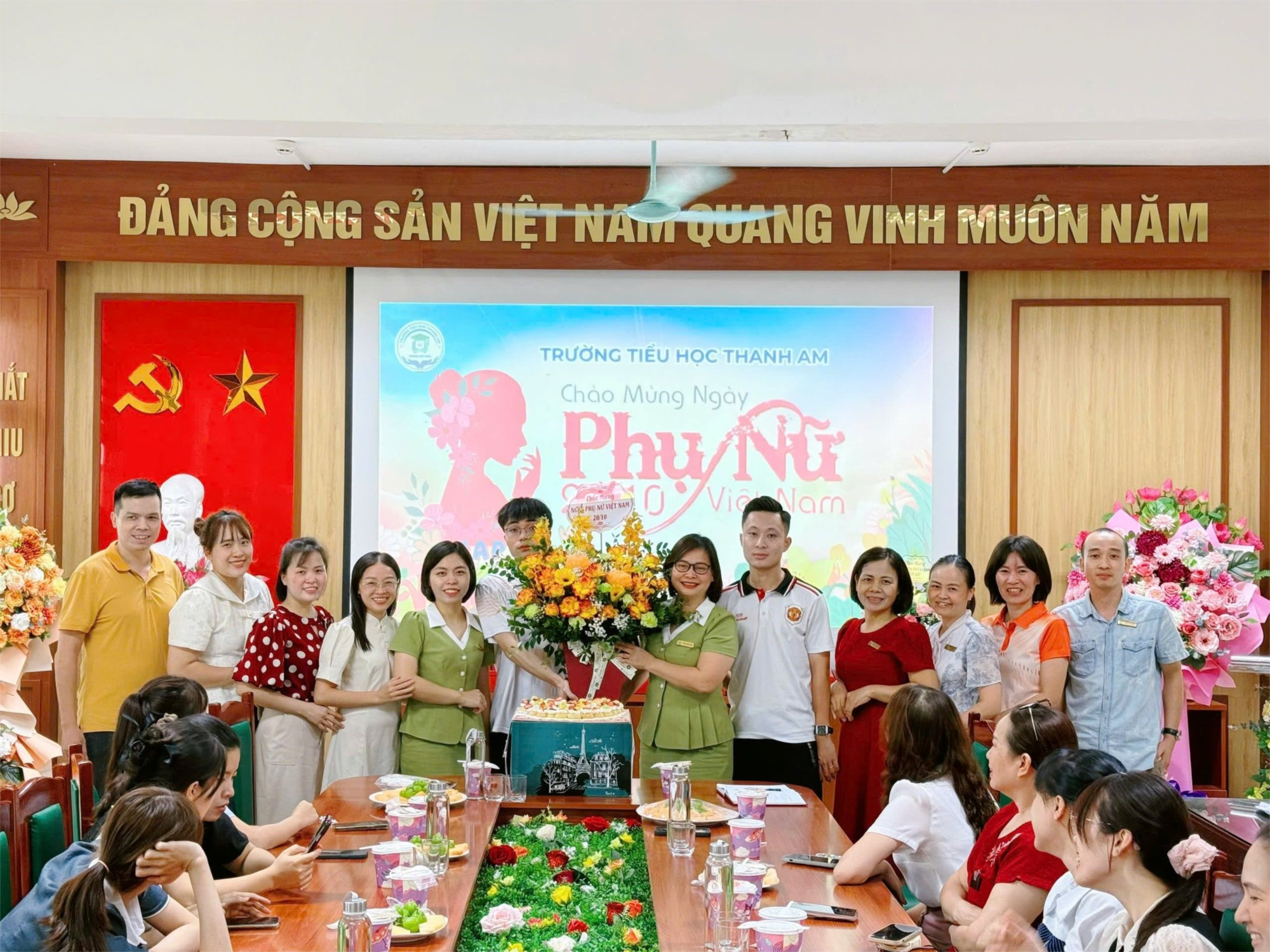 Sáng ngày 18/10, không khí tại phòng Hội đồng Sư phạm ấm áp và rộn ràng hơn bao giờ hết. Đại diện Ban giám hiệu Nhà trường đã tổ chức buổi gặp mặt thân mật và trang trọng để gửi những lời chúc tốt đẹp nhất cùng những phần quà ý nghĩa đến toàn thể nữ cán bộ, giáo viên, nhân viên – những người mẹ, người cô đang ngày đêm thầm lặng cống hiến cho sự nghiệp "trồng người" tại Thanh Am.